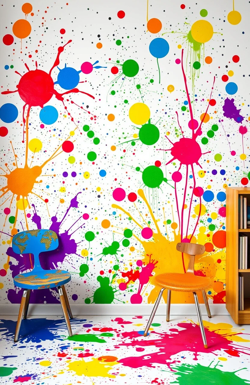 Imagine walking into a room where the walls are alive with colors, as if an artist’s palette exploded in the most beautiful way. Paint splatter walls can energize students and spark their creativity.
