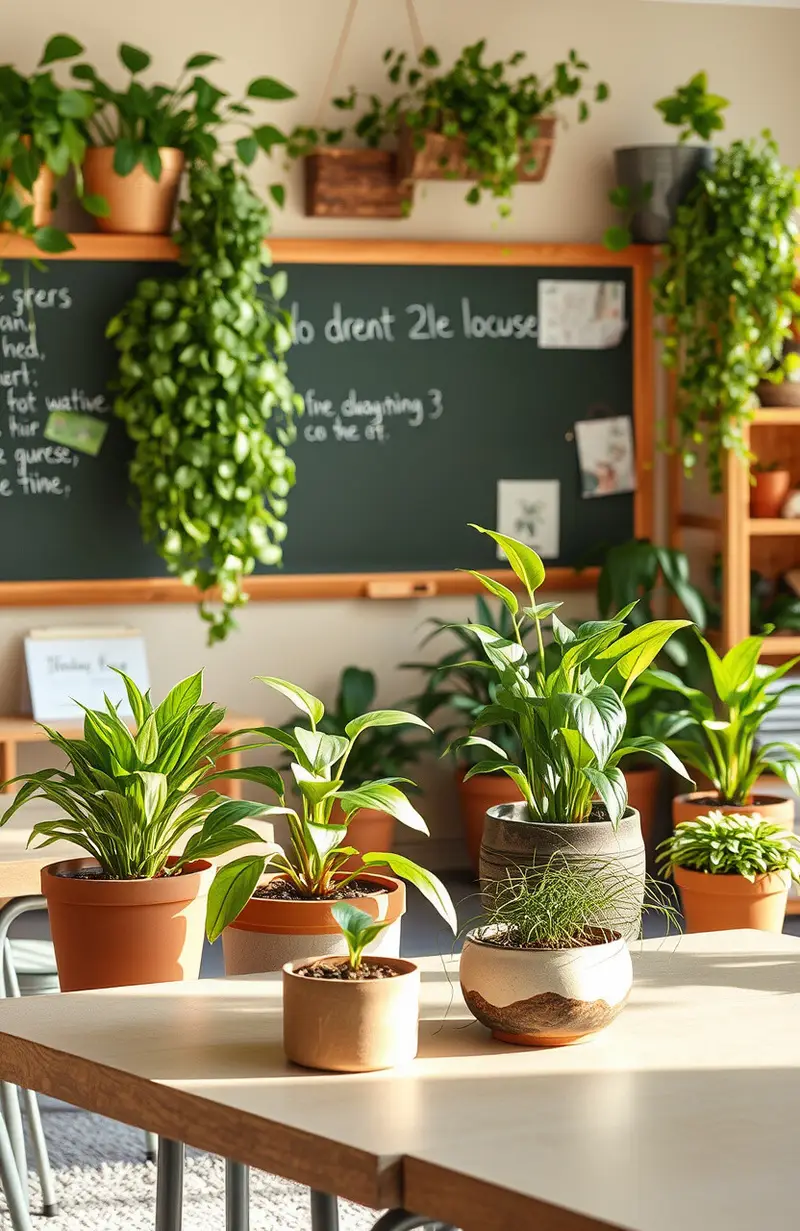 Bringing elements of nature into the classroom can be calming and inspiring. Think of plants, natural textures, and earthy tones.