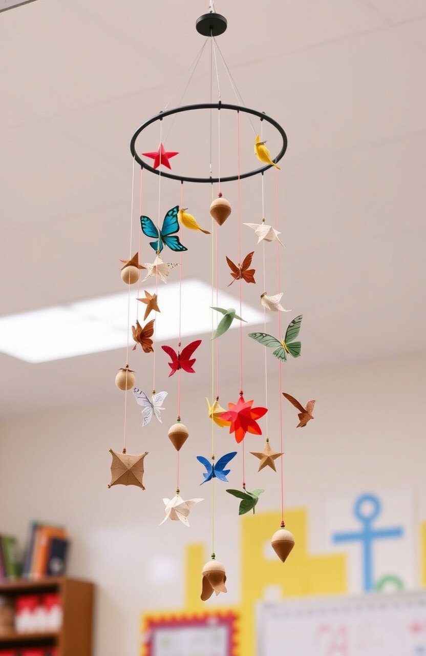 These mobiles benefit students by creating a lively and inspiring atmosphere. They’re unique because they turn airspace into art. Costs can vary, but DIY options with paper and wire are affordable.