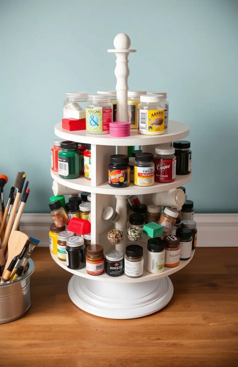 Decorate the center with paint or fabric for a personalized look. Use colorful bins or jars for added flair.