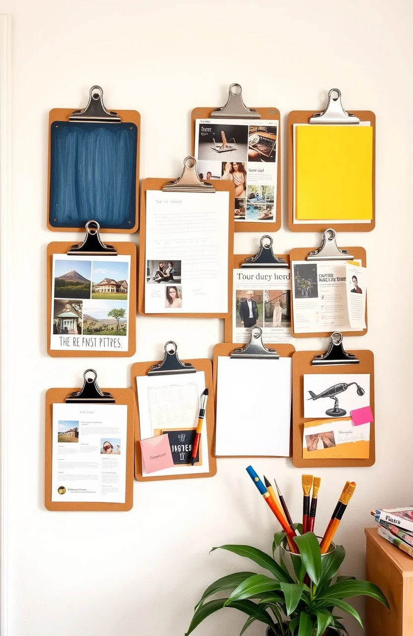 Paint or decorate the clipboards for a personalized touch. Arrange them on a wall for a creative gallery.