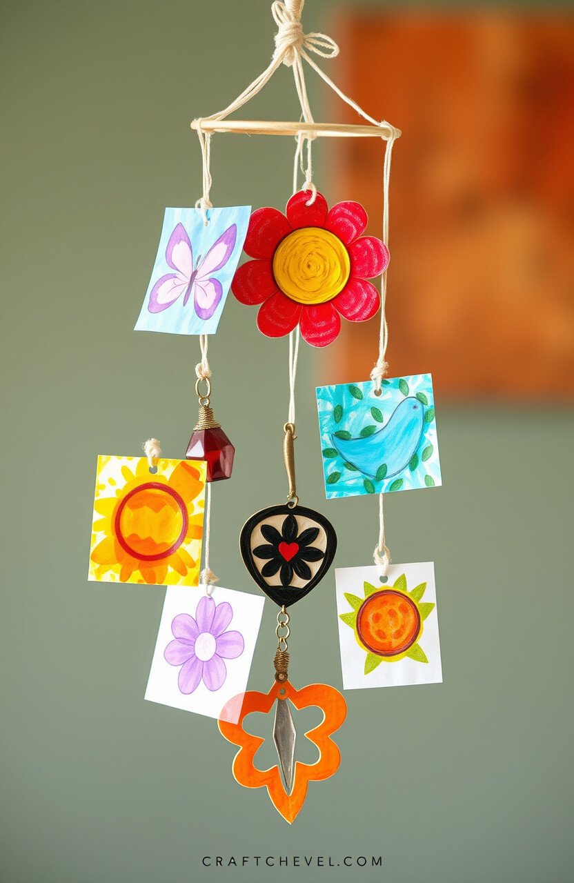 8. Hanging Art Mobile Craft a hanging mobile with wire or string to display art pieces in 3D. It’s like art floating in the air.