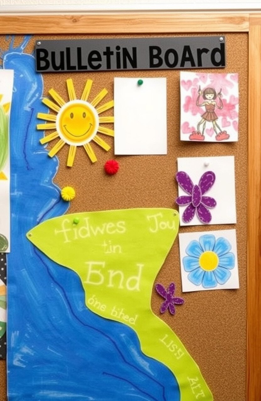 39. Art on a Bulletin Board Use a bulletin board to display art. It’s simple and effective.