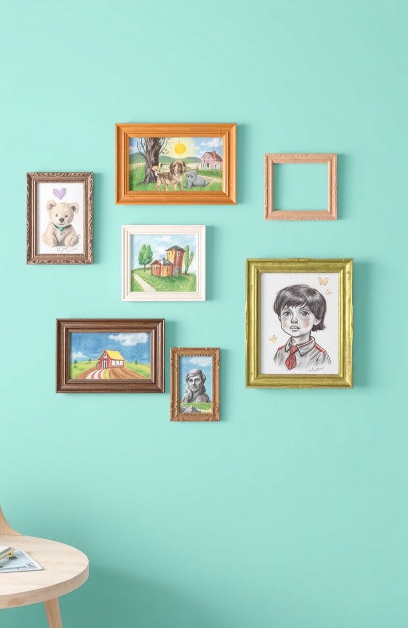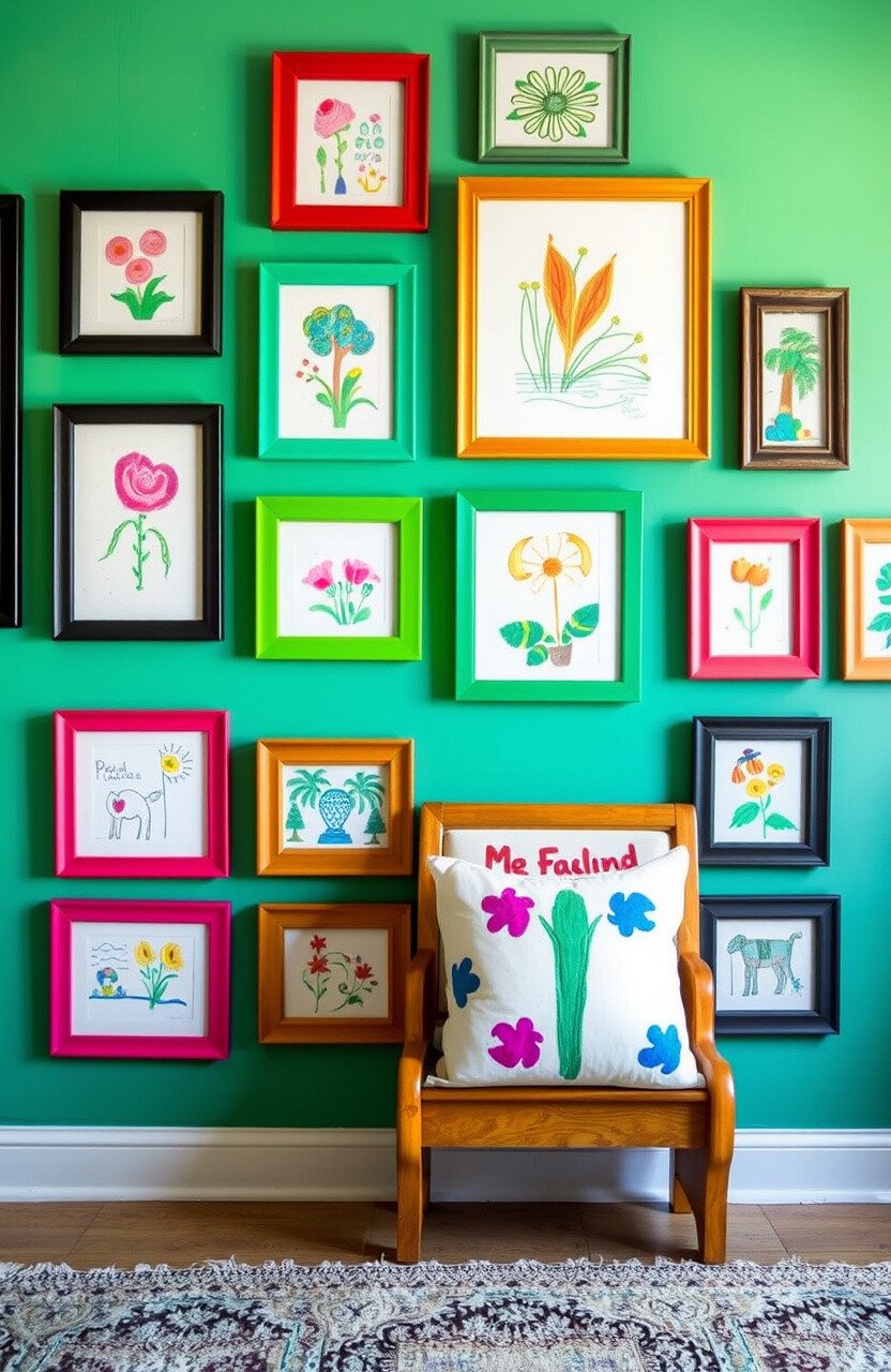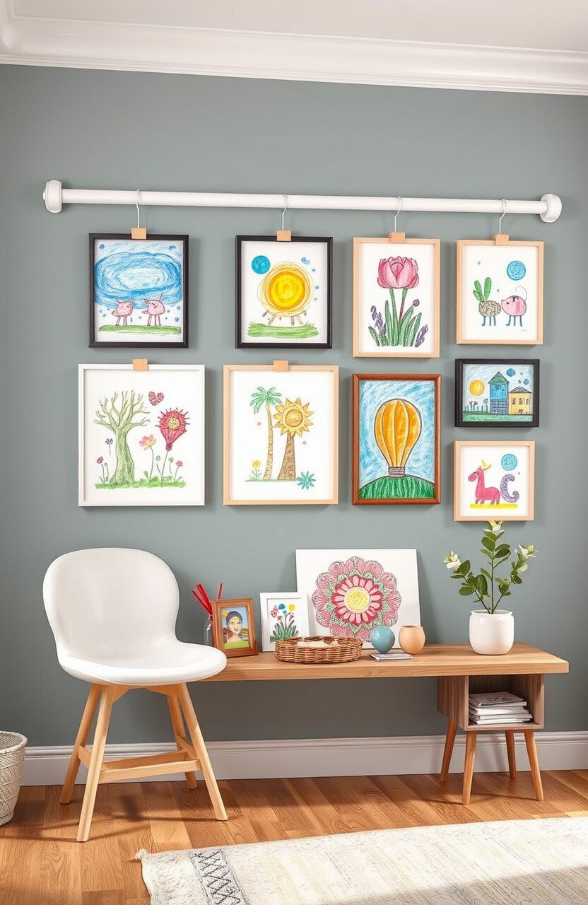 1. Framed Art Walls Create a gallery wall using colorful frames to showcase your child’s artwork. Rotate the art regularly to keep the display fresh and engaging.