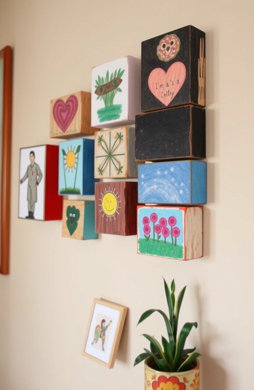 Blocks are affordable and can be made from scrap wood. It’s a creative way to showcase art.