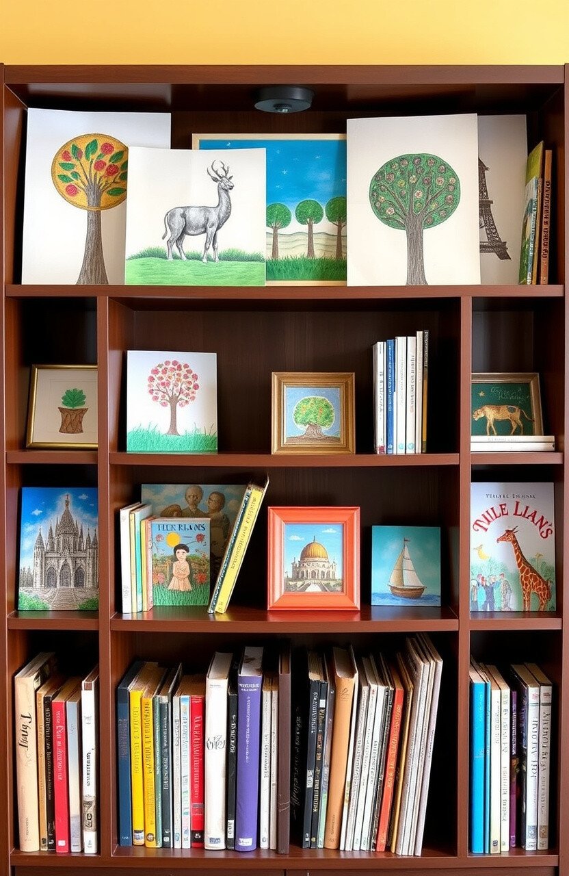 9. Art Bookshelf Dedicate a bookshelf to art displays, standing pieces upright for easy viewing. Combine with art books for a themed look.