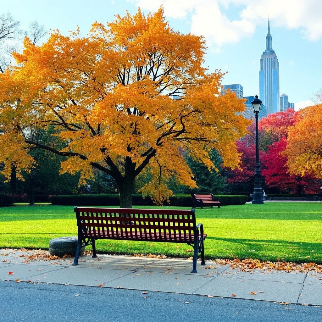 Central Park in autumn is a sight to behold. The park’s expansive greenery transforms into a golden paradise.