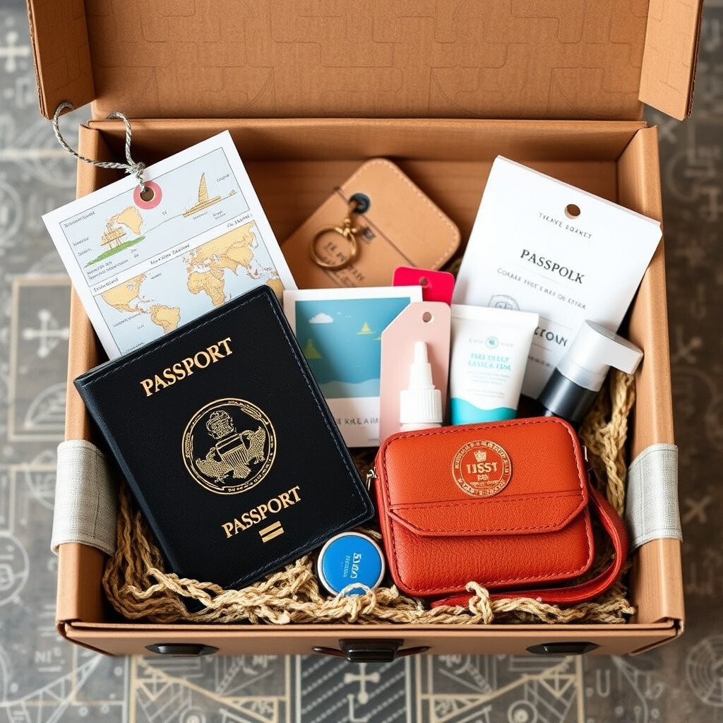 Picture a box that feeds your travel spirit with a passport holder, luggage tags, and travel-sized toiletries.