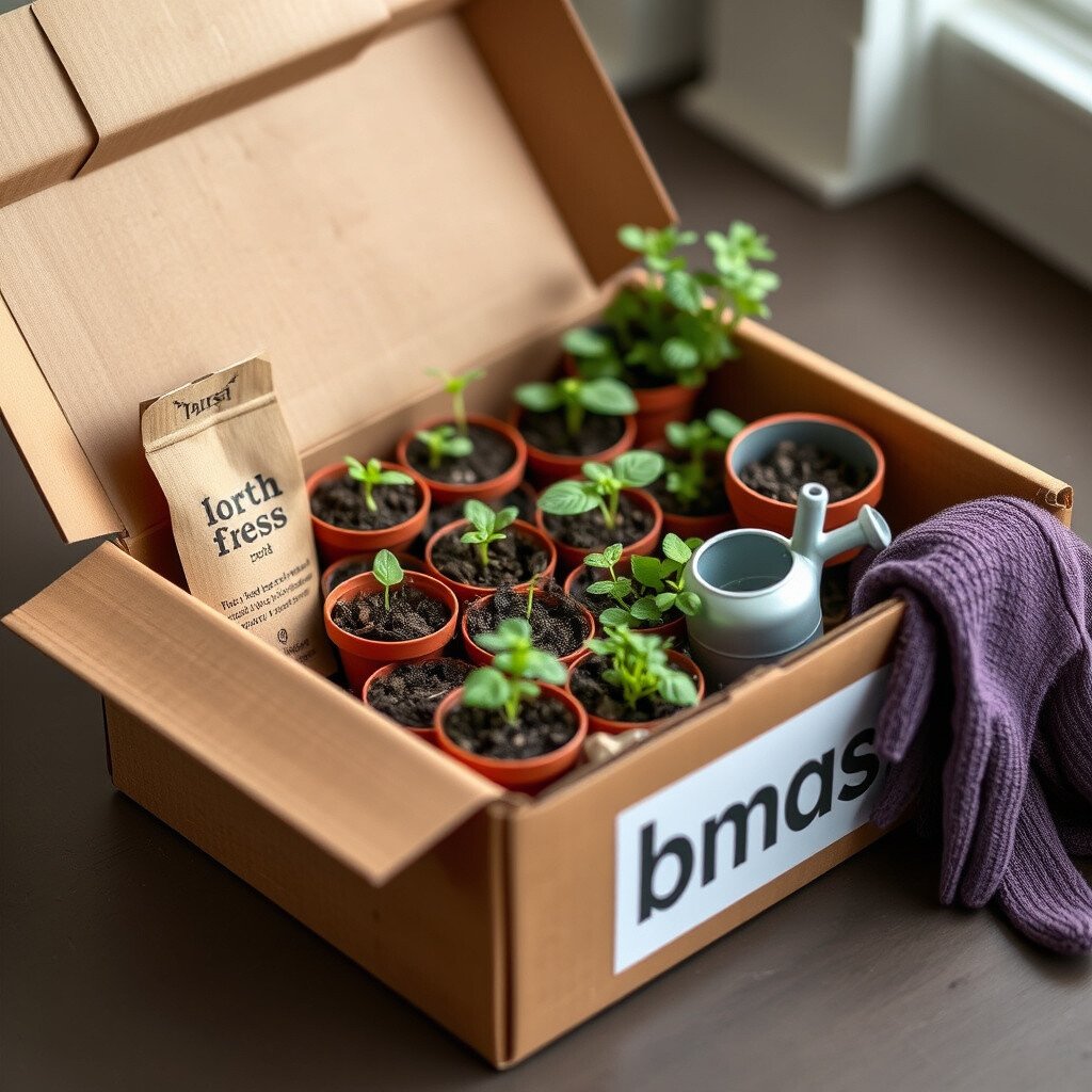 Picture a box filled with seeds, pots, and soil, ready for you to grow your own little garden. Add in some gardening gloves and a small watering can.