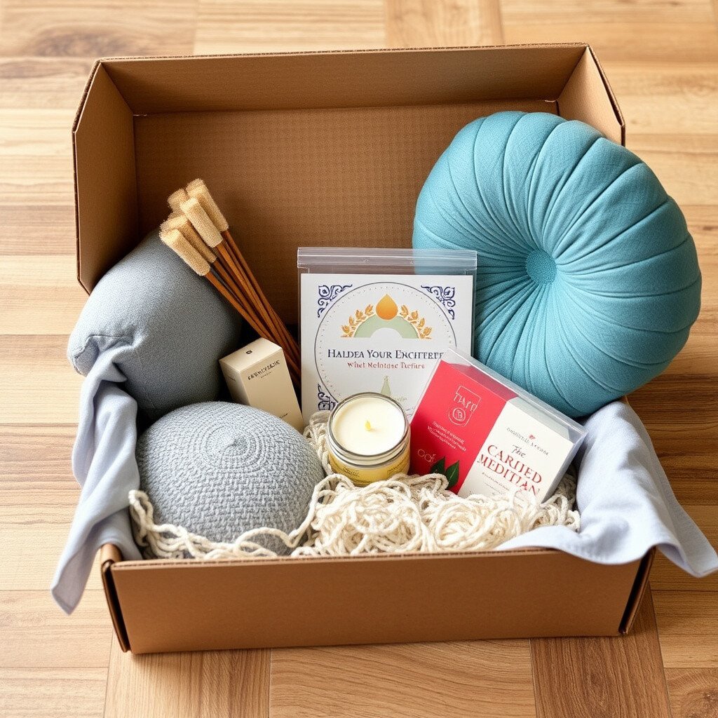 Open a box that helps you find your calm with meditation cushions, guided meditation CDs, and incense sticks.
