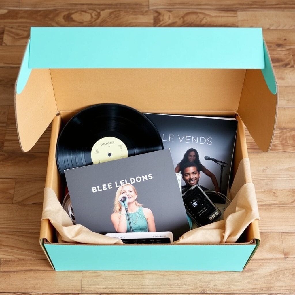Open a box that celebrates your love for music. Include a mix of vinyl records, a portable speaker, and concert memorabilia.