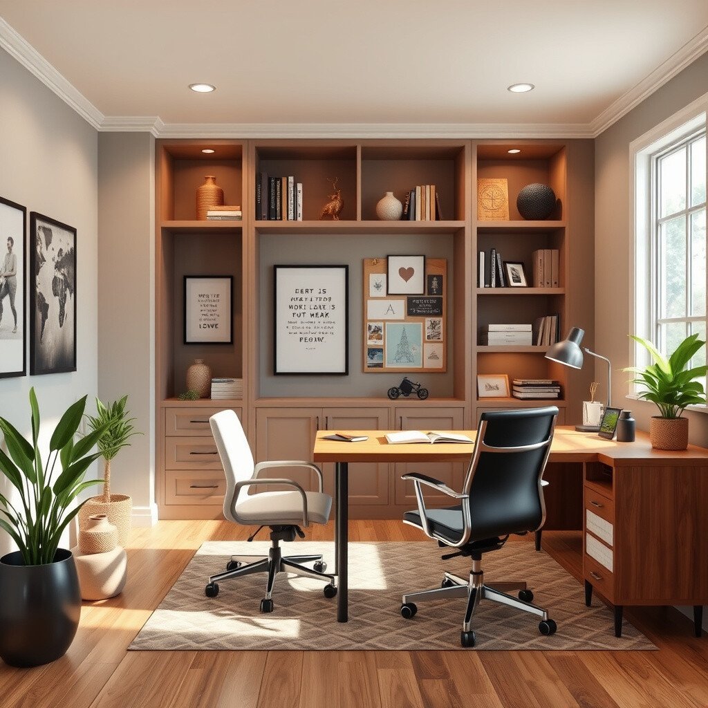 This dedicated space supports focused work and creativity. Customize it with motivational art or a vision board to keep you inspired.