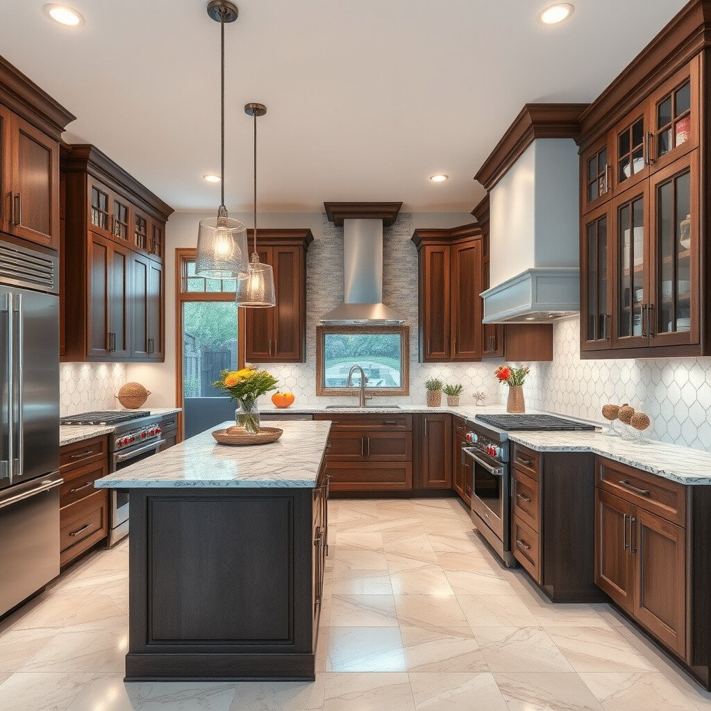 Design this kitchen to be the heart of your home, where delicious meals and memories are made. Choose durable materials like granite or quartz for long-lasting beauty.