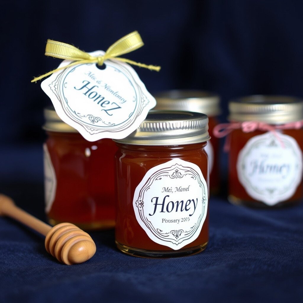 Add a touch of elegance with personalized labels or tags. Local or artisanal honey can add a gourmet flair. A sweet favor that’s sure to be remembered.
