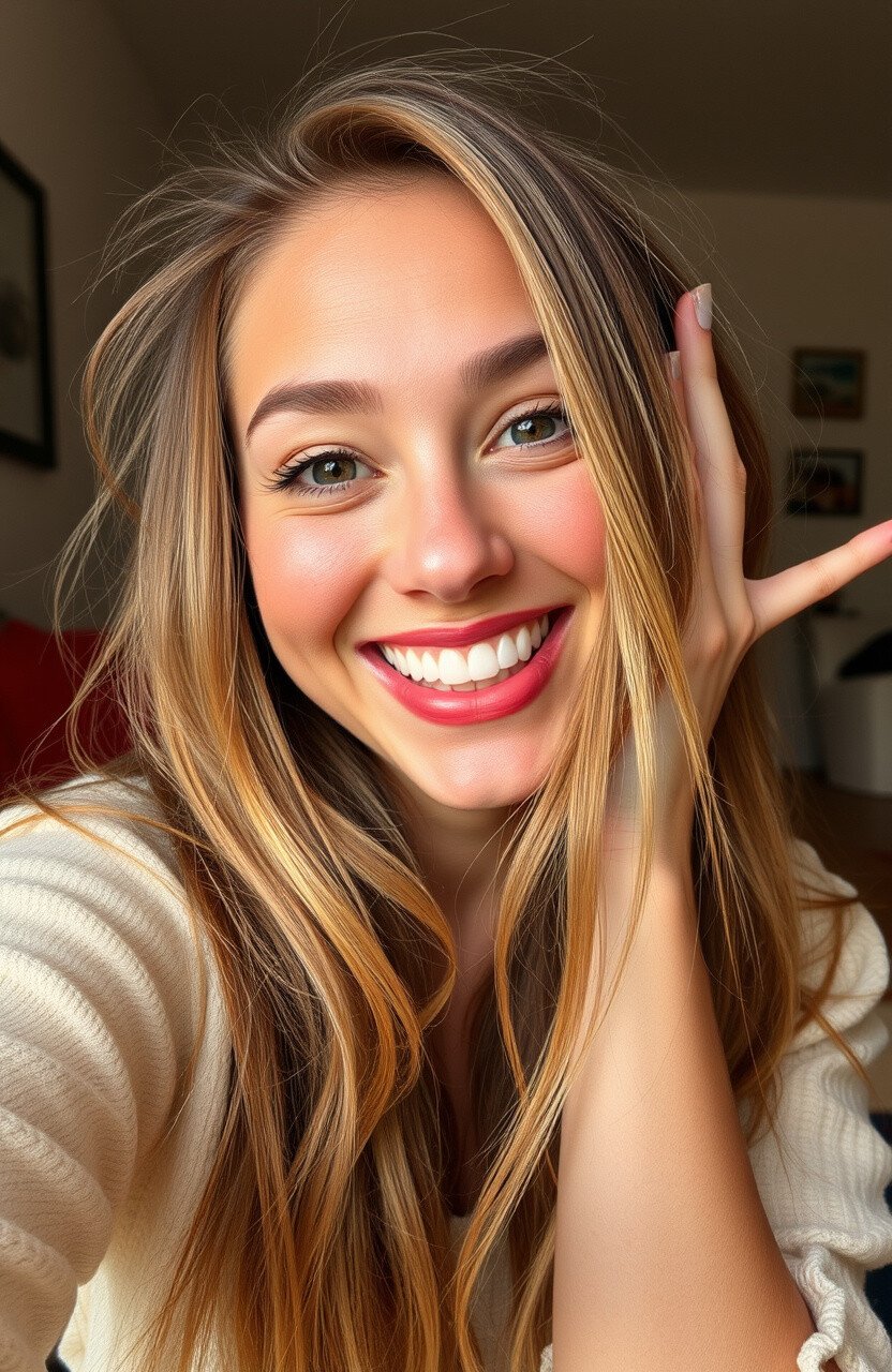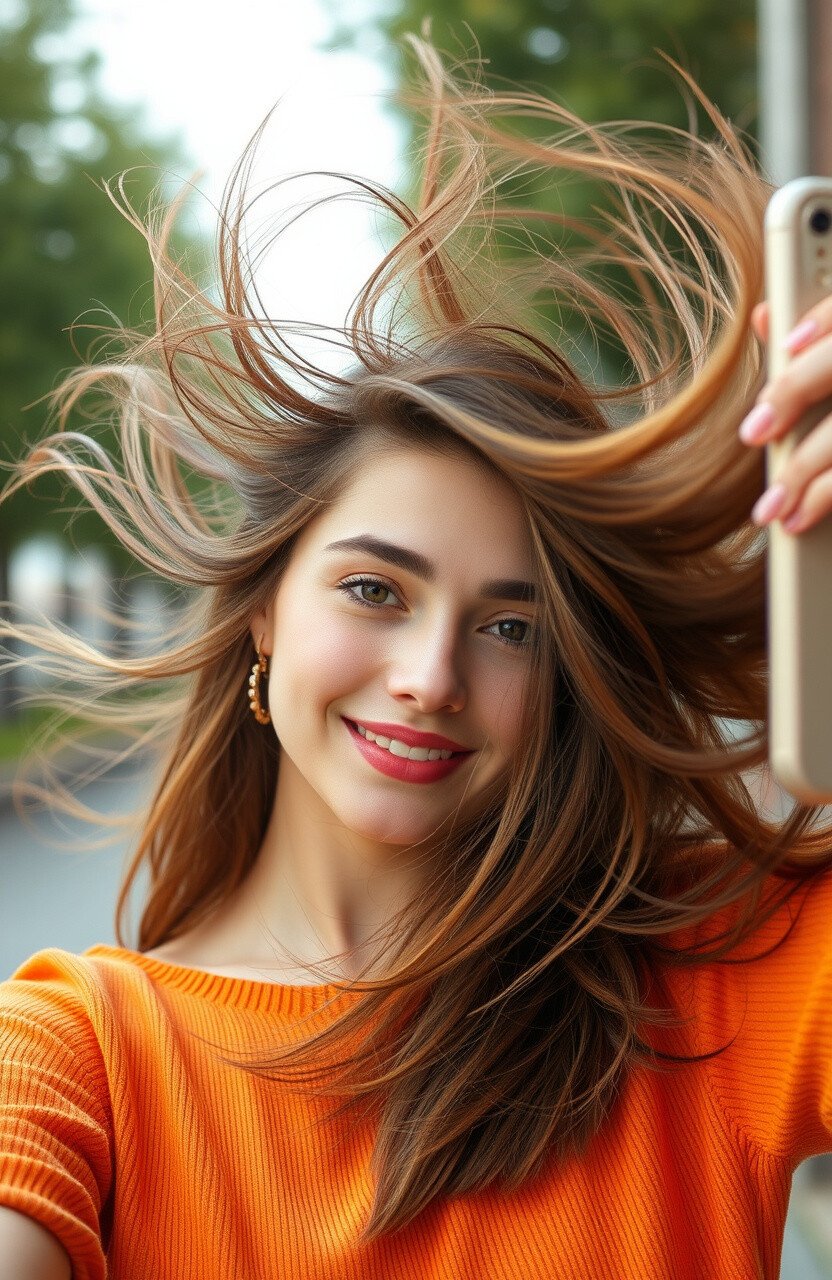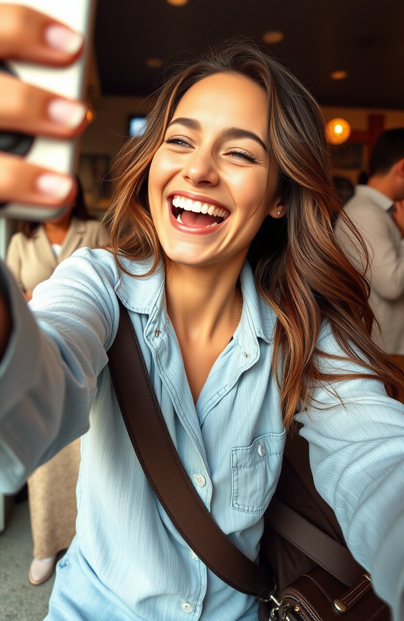 There’s nothing more contagious than a genuine laugh, and capturing it in a selfie makes for an unforgettable photo. Think of something funny or have someone tell you a joke as you snap the shot. This pose brings out your natural beauty and a sense of joy that can brighten anyone’s day.
