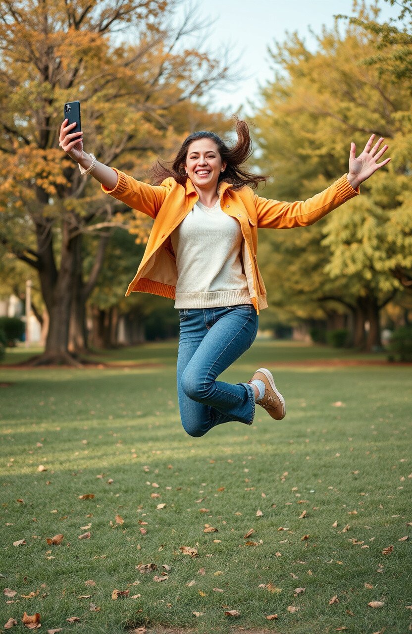 Capture an action shot with a jump. It’s a lively and energetic pose that adds movement to your photos. Perfect for outdoor settings or when you’re feeling adventurous. This pose is sure to bring a smile to your face every time you see it.