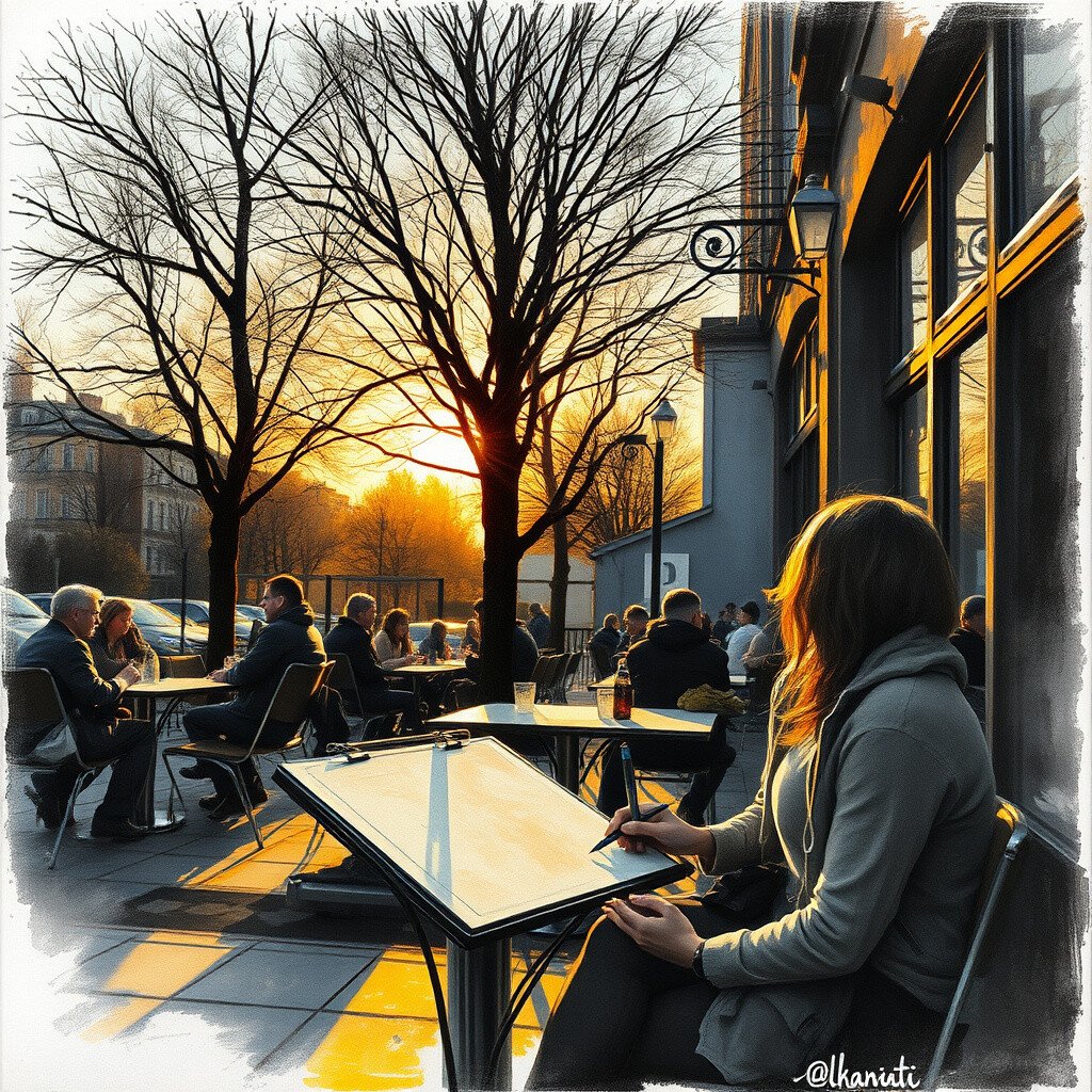 Imagine sitting at a cozy outdoor cafe as the sun begins to set, casting a golden glow over everything. There’s something magical about this time of day, especially when paired with the rich, nostalgic vibes of dark academia.