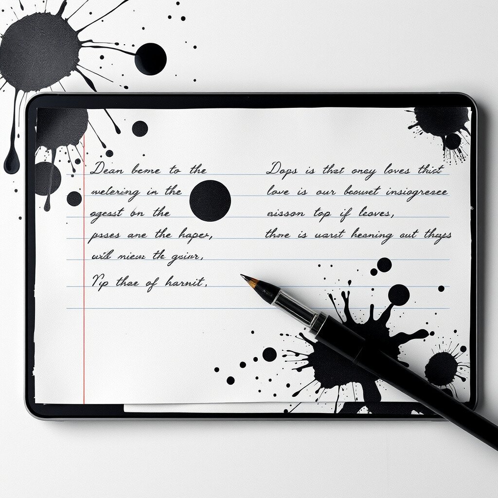 Bring the charm of handwritten notes with ink stains. This layout uses images of ink blots and splatters for a creative, artistic touch.