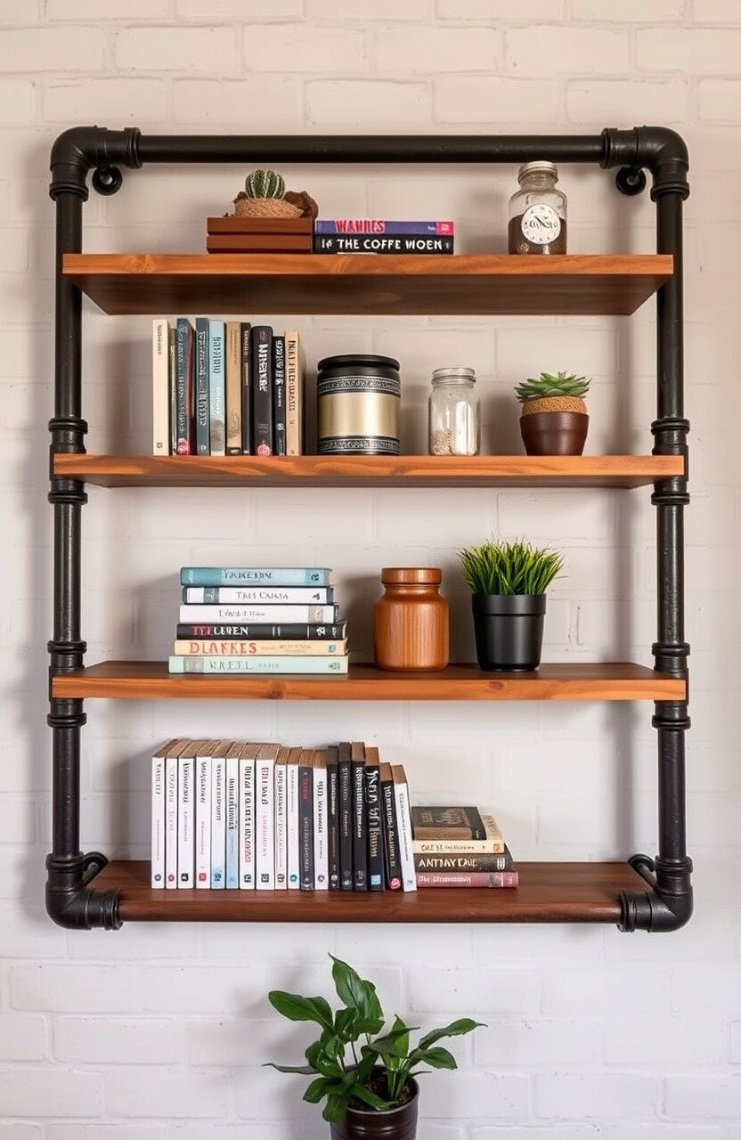 Industrial pipe shelves bring an edgy vibe. They’re sturdy and stylish at the same time.