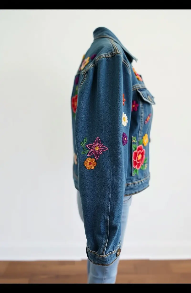 Embroidery can transform your denim jacket into a work of art. Stitch colorful threads into flowers, animals, or abstract designs for a unique touch.
