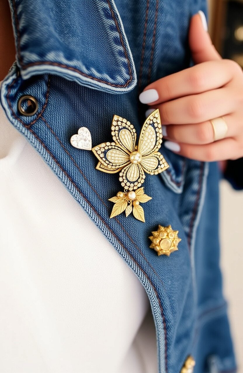 Attach vintage brooches for a touch of elegance and history. Each brooch tells a story and adds a bit of sparkle.