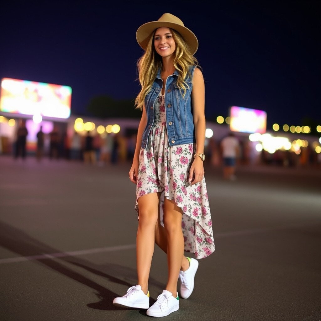 Concert nights are the perfect time to express your unique style. With denim vests and white sneakers, you can create outfits that are both comfortable and stylish, ideal for dancing the night away.