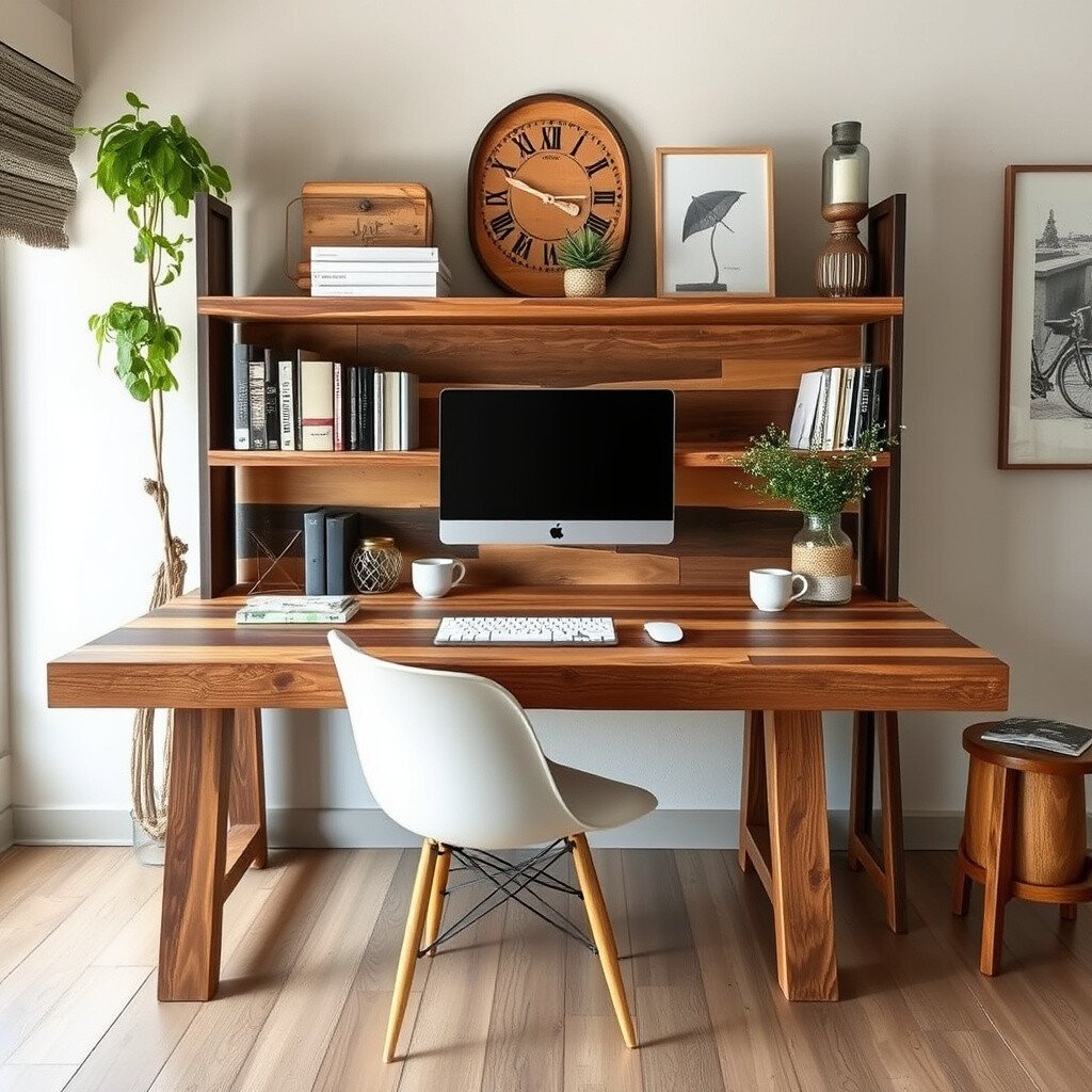 Imagine bringing a piece of history into your workspace, where every knot and grain tells a story. These desk ideas will have you dreaming of rustic charm and cozy corners.