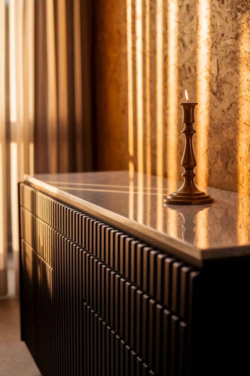 Bring an artistic touch to your dining room with a geometric pattern console. It’s like having a piece of modern art in your home.