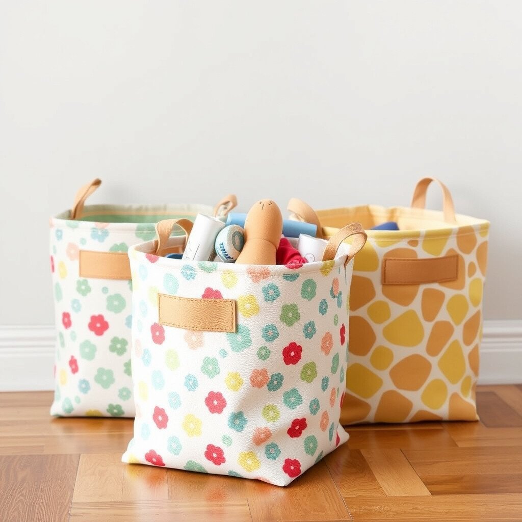 Fabric storage bins are both functional and decorative. Use sturdy materials to create bins that can hold toys, books, or any clutter that needs a home.