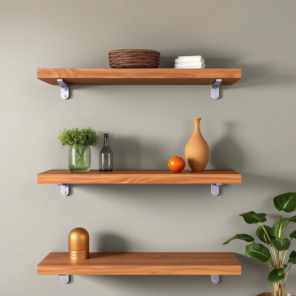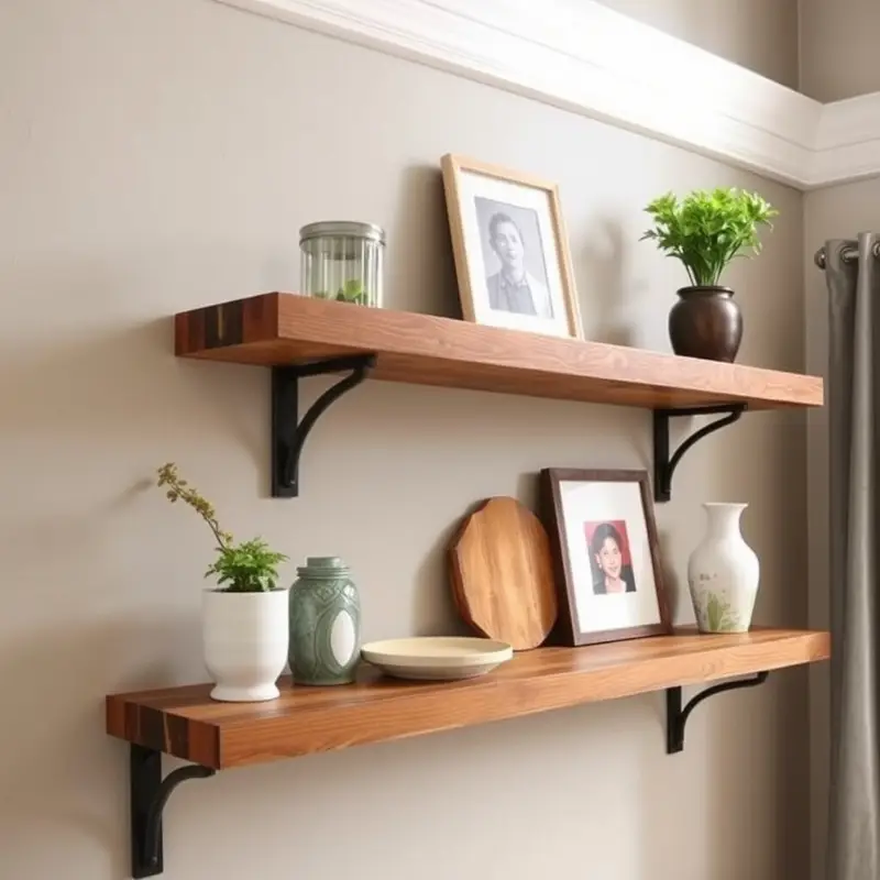 Pair them with metal brackets for a minimalist design. They’re ideal for displaying delicate items or art pieces.