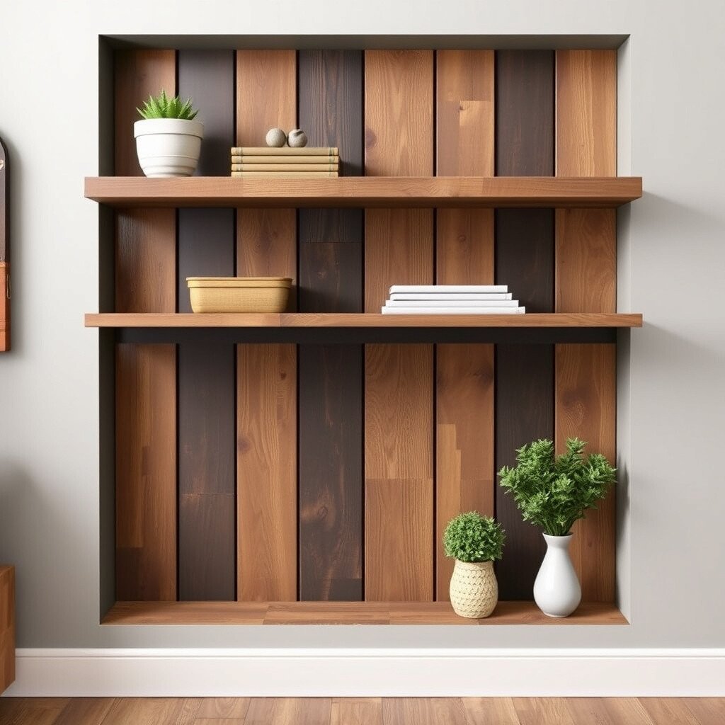 14. Shiplap Style Embrace the cozy feel of shiplap with shelves that mimic this popular design. The horizontal lines add texture and interest.