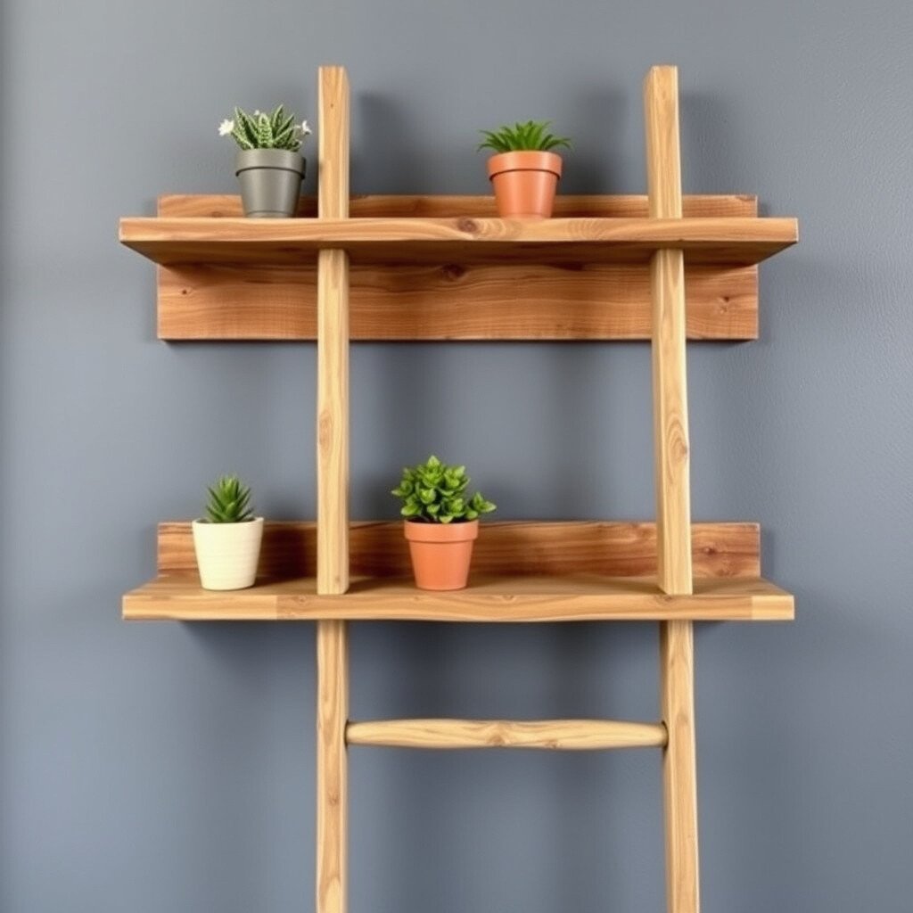 11. Vintage Ladder Shelves Repurpose an old ladder into a set of unique floating shelves. The rungs offer natural divisions for displaying items.