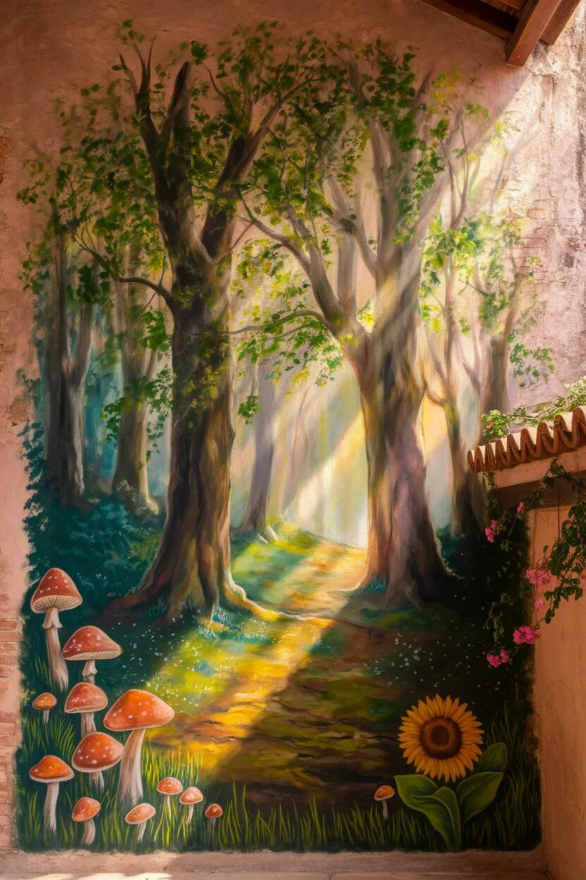 Imagine stepping into a lush forest every time you enter a room. A nature-inspired forest mural can make this a reality by bringing the outdoors in. The idea is to paint tall trees, lush foliage, and maybe a few woodland creatures for added charm.