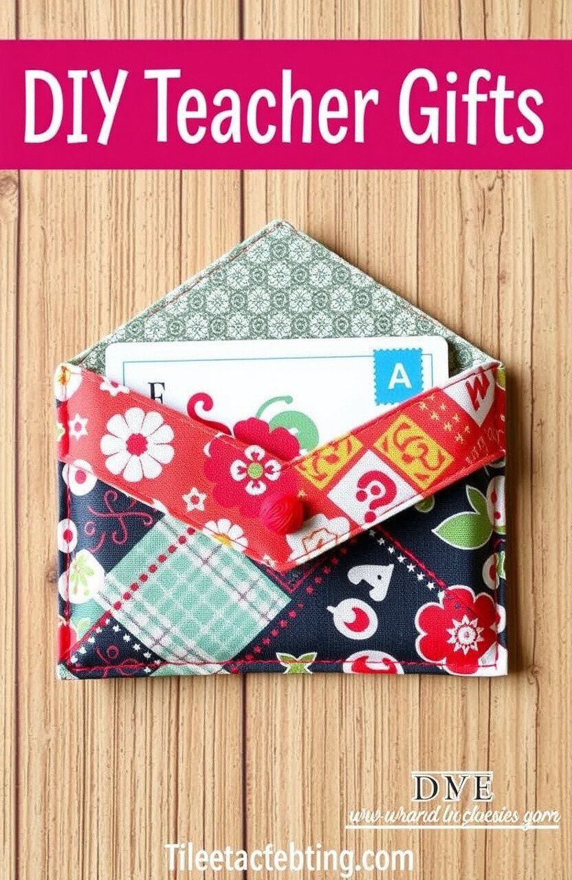 Using delightful fabric patterns, you can create an envelope that feels cozy and special. Choose a fabric that suits your teacher’s personality, like florals for a nature lover or geometric designs for a math enthusiast. This holder is soft to the touch and adds a warm, personal touch.