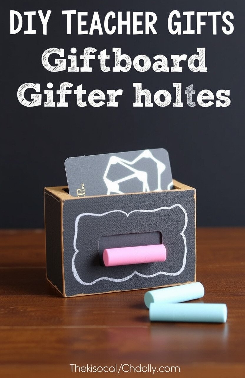This idea is trendy and brings a classroom feeling to the gift. It’s unique because the teacher can continue to use it on their desk. Keep it budget-friendly by using chalkboard paint and a small wooden or cardboard piece.