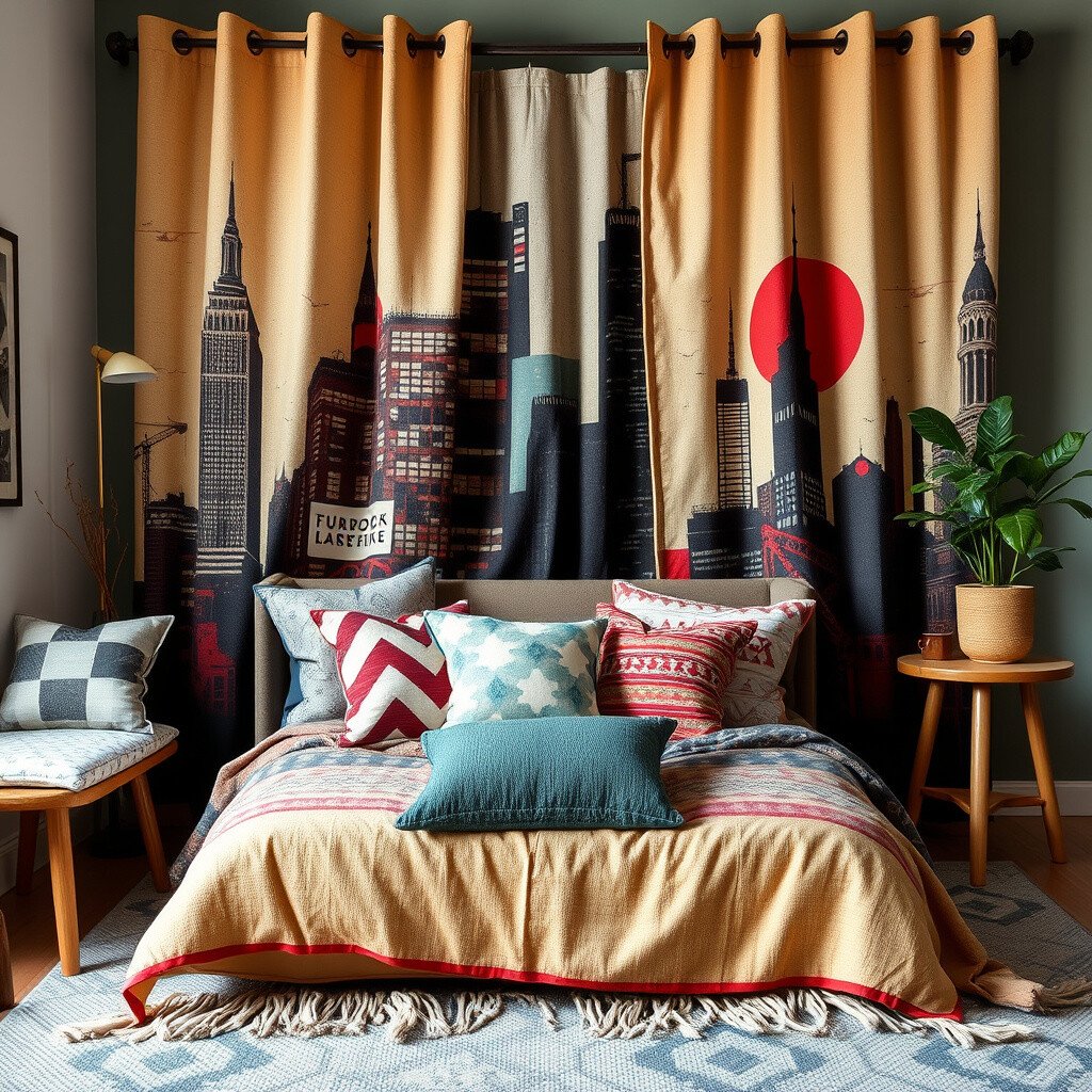 Textiles with urban designs or patterns can bring a room to life. Consider geometric throws, cityscape curtains, or street art-inspired cushions.