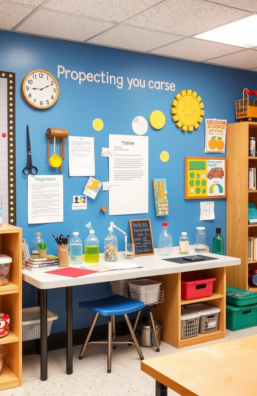 Include models of planets or atoms. Let students contribute to the decor with their projects.