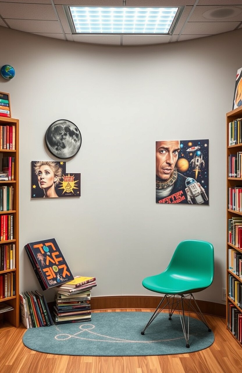 Transform a corner into a science fiction zone with books and decor. It inspires imagination and exploration.