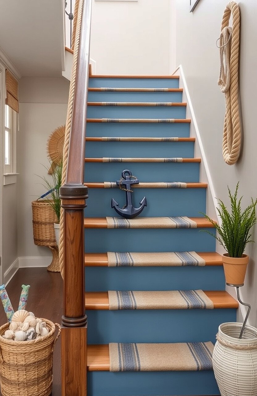 Decorate stairs with a nautical theme. Think ropes, anchors, and blues.