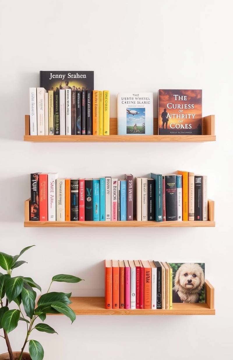Wall-mounted book ledges are a stylish way to display favorite reads. They’re perfect for showcasing covers and titles.