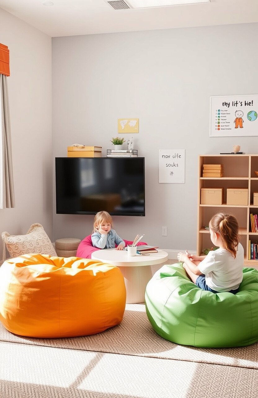 Bean bag chairs offer a cozy spot for reading or relaxing. They’re perfect for a laid-back learning environment.