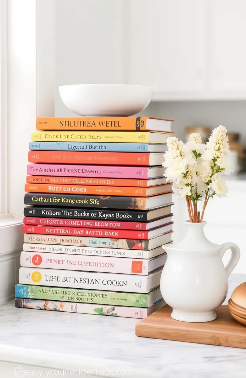 Show off your favorite cookbooks in a tidy stack. It gives your kitchen a cozy, lived-in feel.