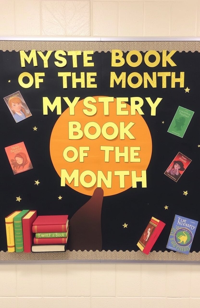 Feature a mystery book each month with clues and a reveal. Use themed decor and colors to create excitement.