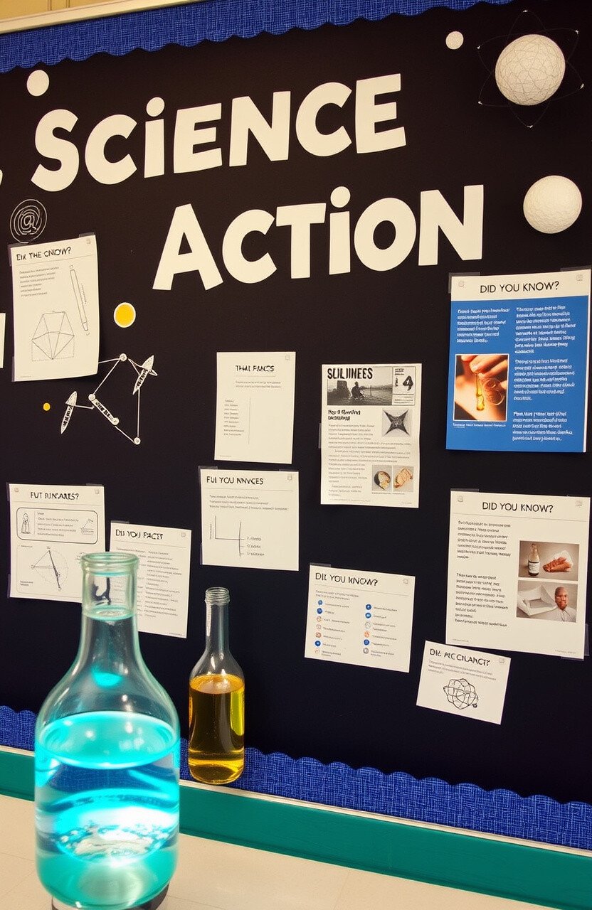 Showcase science experiments and discoveries with a dynamic board displaying diagrams and photos. Include fun facts and “Did You Know?” sections.