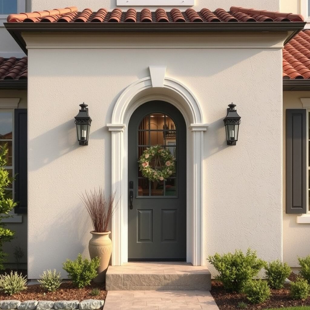 It’s durable and adds a Mediterranean vibe to your entrance. Stucco can be painted, making it easy to refresh.