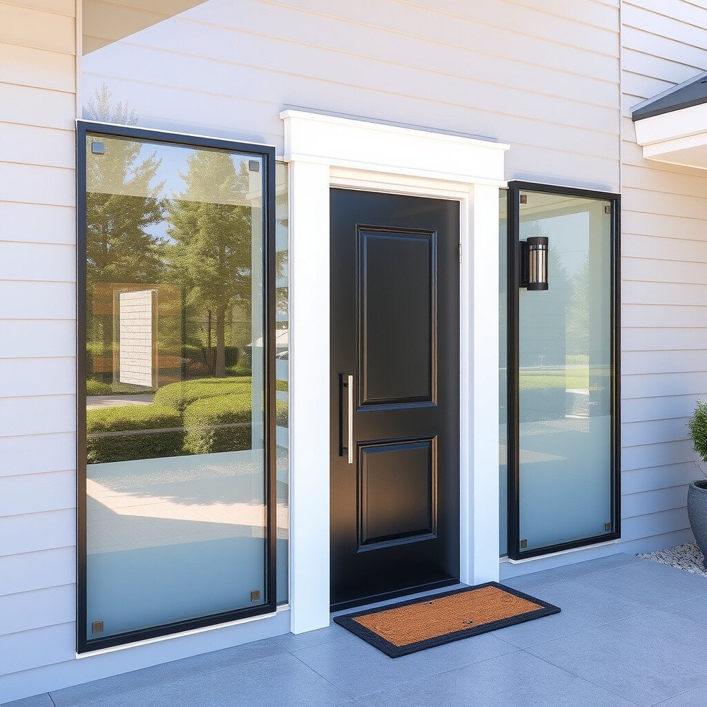Glass panels offer a sleek, modern look with lots of light. They are perfect for creating an inviting entrance.