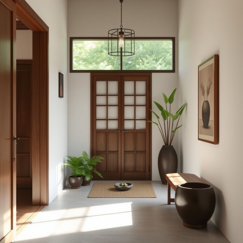 A Zen foyer is a sanctuary of peace. Think of natural elements, soft colors, and a clutter-free environment.