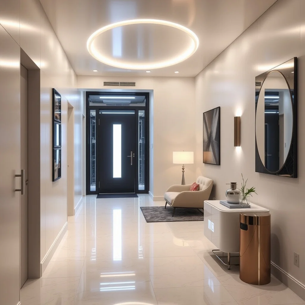 Step into the future with a high-tech foyer. Imagine sleek surfaces, innovative lighting, and smart home features.