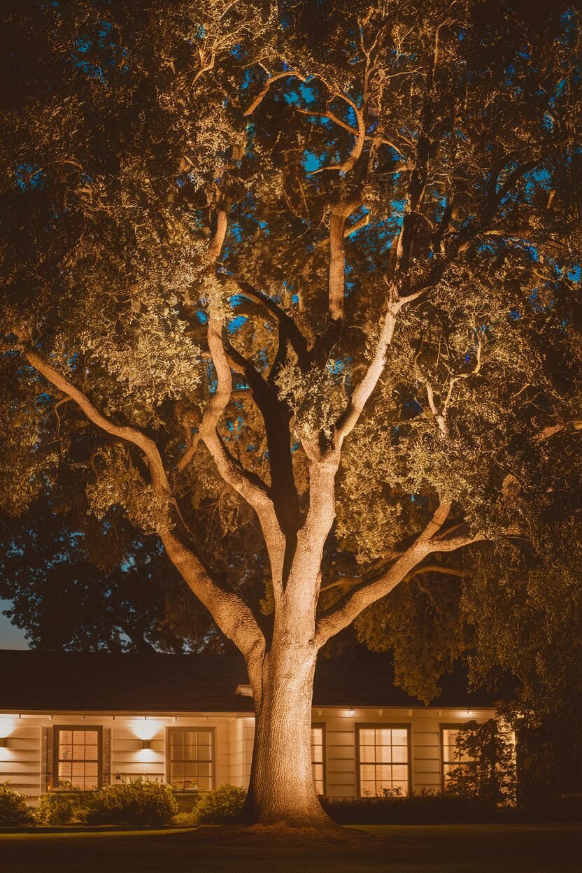 Tree uplighting is a fantastic way to showcase the beauty of your trees at night. By placing lights at the base, you can create dramatic shadows and highlight the tree’s shape.