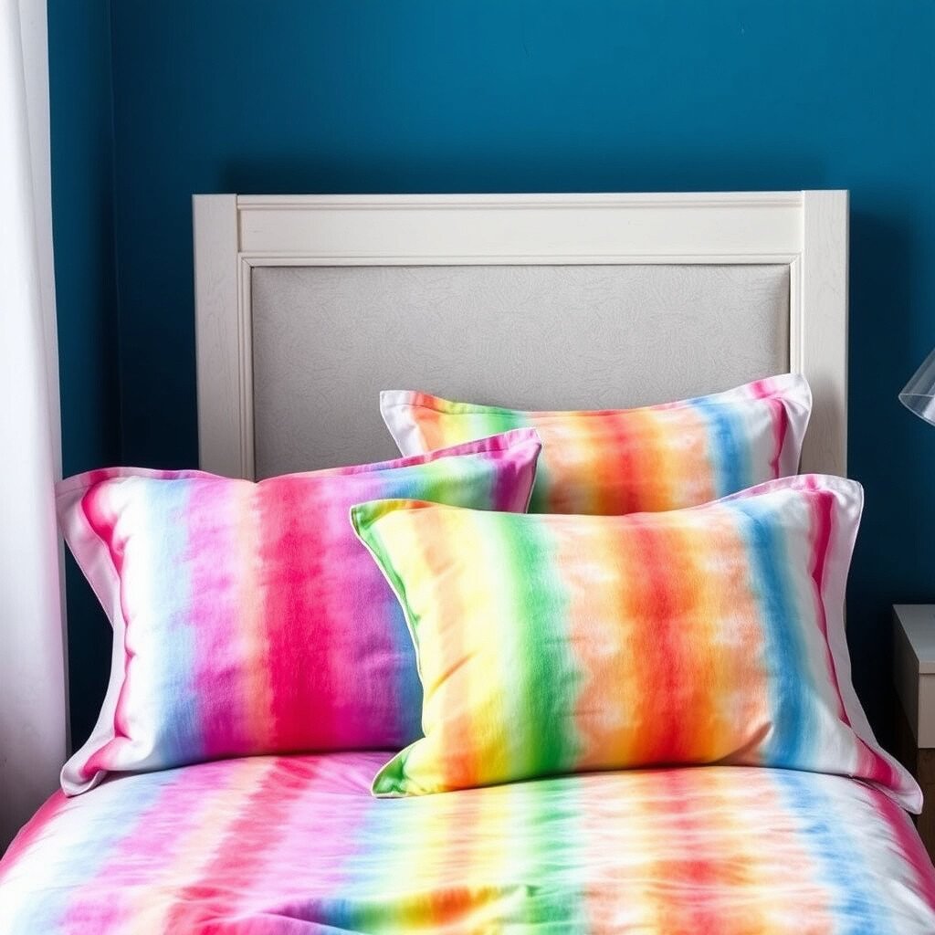 Create a calming, artistic atmosphere in your bedroom with gradient-dyed bed sheets. This technique involves blending colors for a smooth transition.